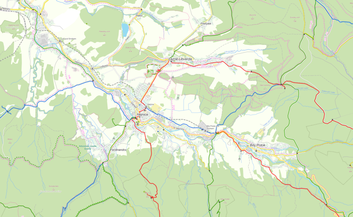 - Základní vrstva: plně routovatelná síť pozemních komunikací, v podrobnosti od dálnich až po cesty pro pěší.