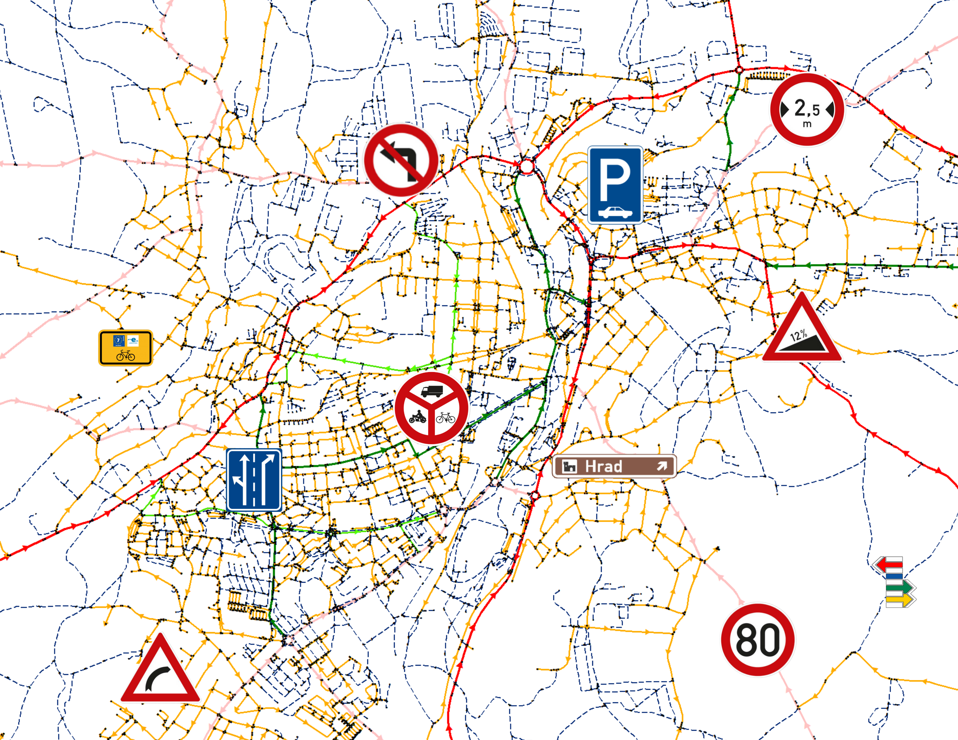 Mapová řešení a analýzy dostupnosti pro pěší, cyklisty a lyžaře.Databáze zájmových bodů (POI)
