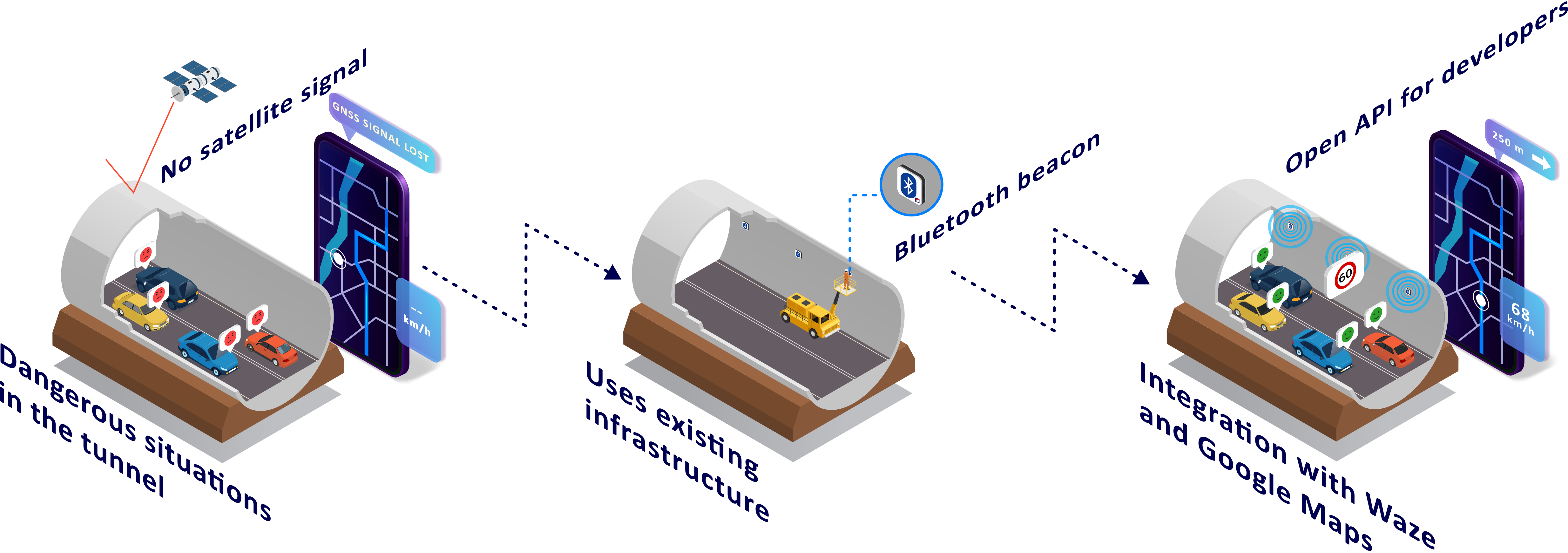 - Support for popular navigation applications - enables positioning functionality in tunnels also in applications such as Waze and Google Maps.