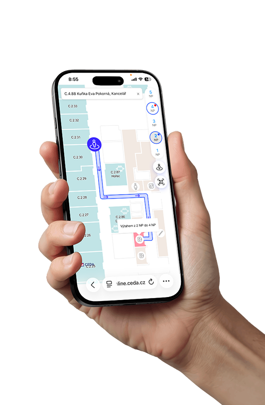 Zjednodušte orientaci a zvyšte komfort návštěvníků i zaměstnanců pomocí navigace v budovách i areálech. Bez nutnosti instalovat aplikaci.